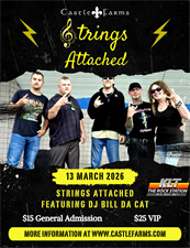 Get ready for an incredible night of live music at Castle Farms! On Friday, March 13, local favorite Strings Attached takes the stage for a high-energy performance from 7–9 PM. Fresh off their big win at the 2025 Mushroom Festival Battle of the Bands, Strings Attached is bringing their award-winning sound and hometown energy to this special concert event.
