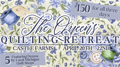 Join us for The Queen’s Quilting Retreat, a three-day immersive experience where creativity and camaraderie come together in the elegant setting of Castle Farms! Whether you’re an early riser or a night owl, our flexible hours (6 AM – 10 PM) ensure you have plenty of time to work on your projects at your own pace.